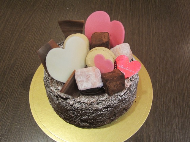 バレンタインはかわいいチョコケーキを贈りませんか♪ ご予約受付中です。 (飾りは一部変更する場合もございますのでご了承ください。)