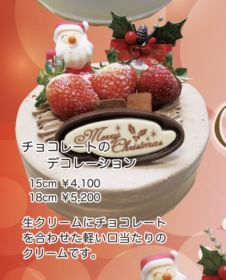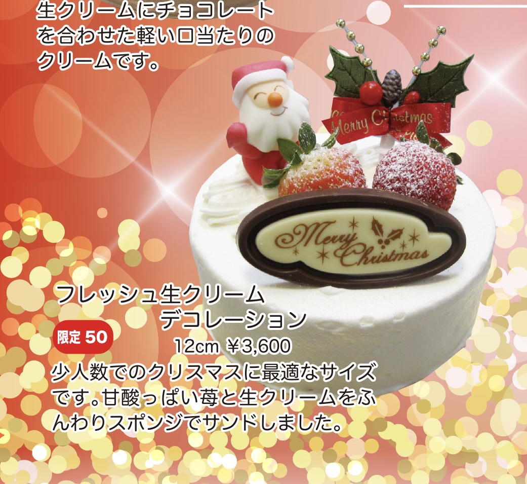 デコレーションケーキの販売は当日店頭に並んである分のみになります。ご希望の商品がない場合もございますのでご予約をお願いします。